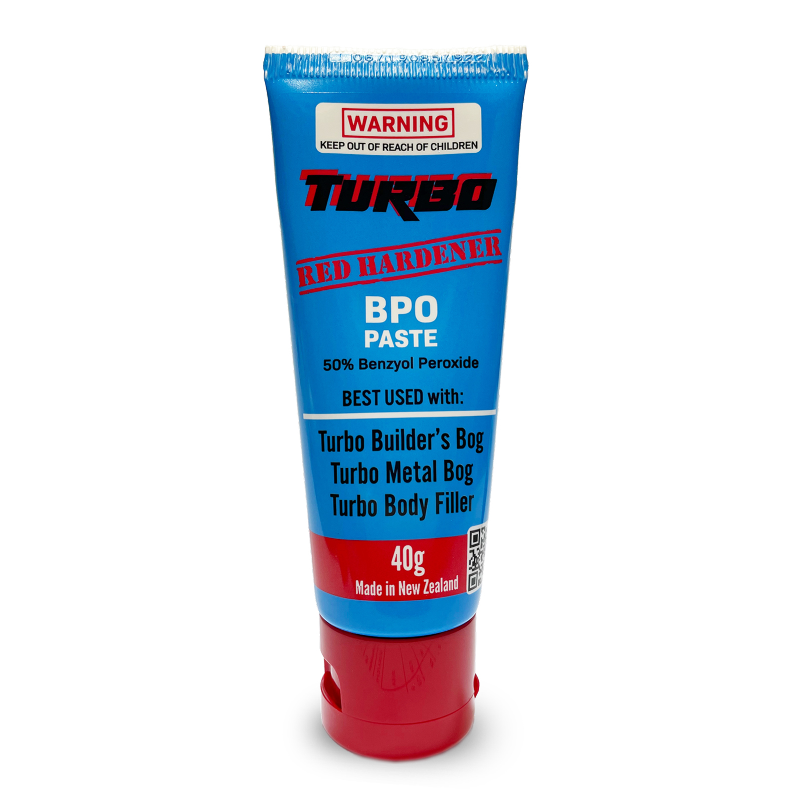 As it sets, TURBO BUILDER’S BOG® passes through a stage like balsa wood, when it can easily be trimmed with a blade or surform file. It then continues to harden and lose its tackiness until it can be rapidly sanded with 36 to 80 grit paper to its rough shape before finish sanding and painting. All done within the hour if you wish!